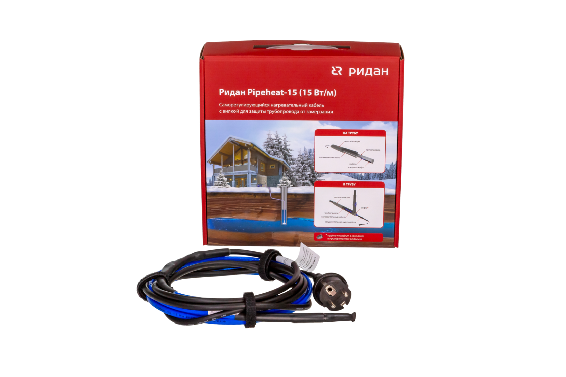 21RT0805R — Ридан Pipeheat-15 саморегулирующийся нагревательный кабель 12 м, 180 Вт, с вилкой