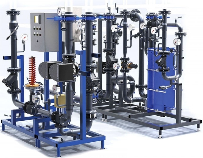 Это узел заводской готовности, объединяющий на своей раме множество компонентов, предназначенных для централизованного отопления, горячего водоснабжения (ГВС), вентиляции и т.д.