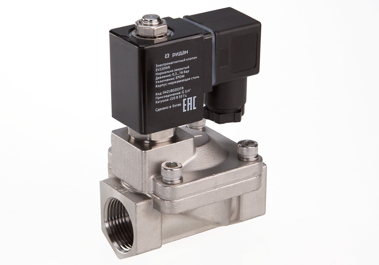 Ридан 042U801531R — Клапан электромагнитный EV220WR, присоединение G 1/2, материал уплотнения EPDM, нормально закрытый, 0,3…16 бар, с катушкой 220 В, 50 Гц
