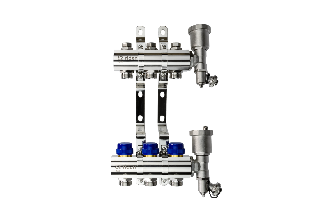 Ридан 088U0703R — Комплект коллекторов FHF-3R set с кронштейнами и торцевыми секциями с автоматическими воздухоотводчиками, 3 контура